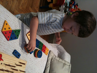 Gente, até agora eu não dei uma corujada neste Blog, mas hoje eu não vou resistir… Olha só o Vitinho aí em baixo, ele só tem 2,5 anos e tem mania de organização! Monta peça por peça dos seus joguinhos e fica um tempão entretido organizando tudo milimetricamente. Pode? E fica irado quando alguma peça cai ou a irmã derruba alguma de suas “obras”. Começa a gritar “amassou, amassou”, mesmo quando a pecinha cai.